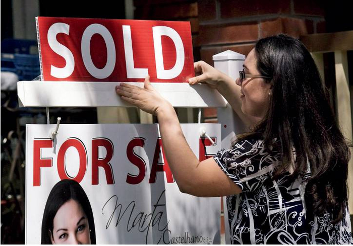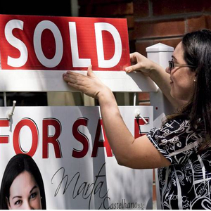 加拿大一家房产中介公司的人员正在张贴售房广告。图/IC