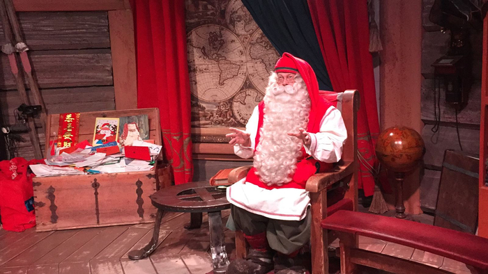 这就是圣诞老人,他正在他的办公室内和大家见面。要做圣诞老人并不简单,他懂得27种不同的语言,还需要考出驯鹿雪橇车驾驶证!在和中国媒体见面时,他以中文和大家做简单交流!