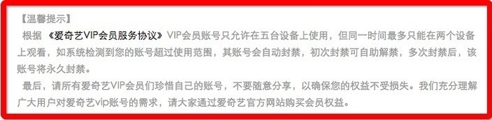 爱奇艺官方关于会员共享的解释