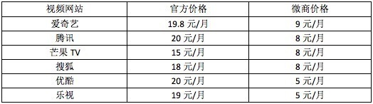视频网站官方价和微商价对比
