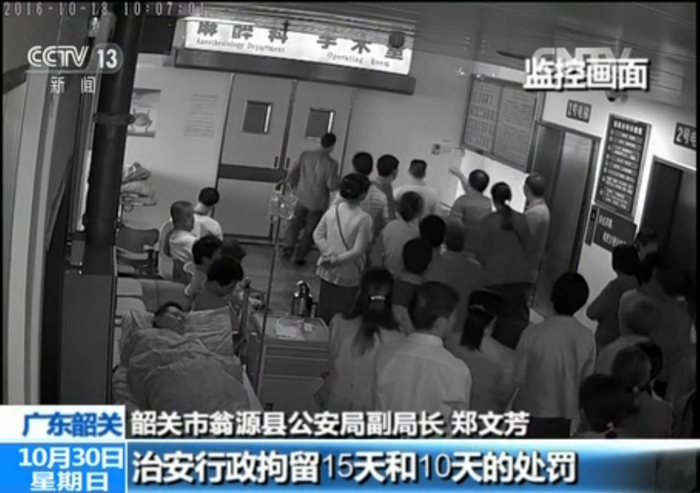 19日,当地警方正式立案。这次事件虽然没有直接伤人,但对医疗秩序和当天手术安全造成了严重影响。翁源县公安机关对此进行调查后,认定该行为属于“医闹”。20日,警方在各方取证后,对带头闹事的两名家属进行了治安拘留。