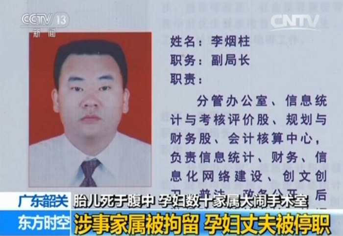 而此次事件中另一个焦点,孕妇曾某丈夫的身份,李烟柱,翁源县卫计局副局长,分管办公室、信息统计与考核评价、普法等工作。