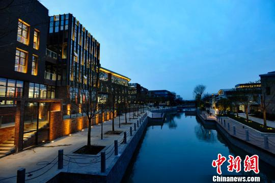 夜色下的梦想小镇。 梁洁供图 摄