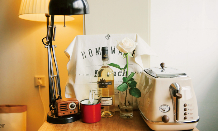 木托盘里既有酱油瓶也有墨水瓶,Connie说这么摆主要是为了好看。