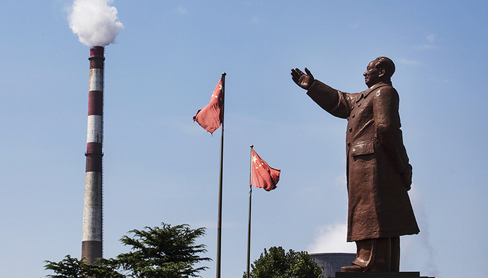 武钢一号高炉出铁,毛泽东亲自站在高炉炉台上见证。摄影:熊少翀