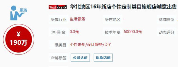 按照行情价,本地生活服务类的天猫旗舰店转让价可达190万元,而处于一级类目的女装店铺一般价格在几万元左右,有部分资质较好、信誉度高的店铺可以售出几十万元。