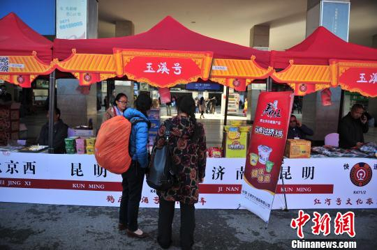 当日,在昆明铁路传媒公司等联合举行的“我最喜爱的高铁商品”评选活动上,共有来自云南大理、玉溪、曲靖、保山、腾冲、红河、临沧、丽江、香格里拉、石林等13个州市县的商家到场参与,接受品评和投票推荐,吸引着众多旅客和市民的目光。