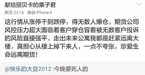 各个和期货相关的群开始骚动,各类自媒体上也有消息不断传出。如果说这晚的商品期货是一场大地震,那么和大地震唯一的区别在于:通讯联系没有受到影响,可以用最快速度知道灾情。