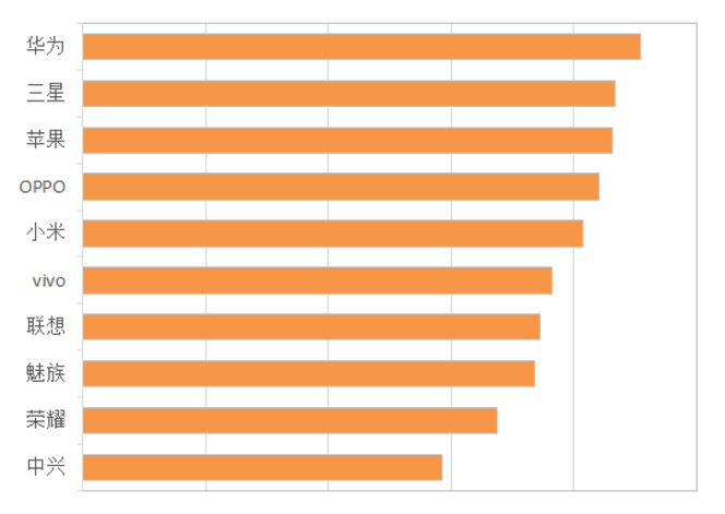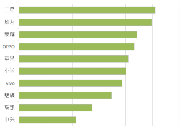 在拍照方面,消费者最认可的品牌是苹果,其次是OPPO和三星,尽管华为发布了双摄像头手机,但是排名并没有十分靠前。