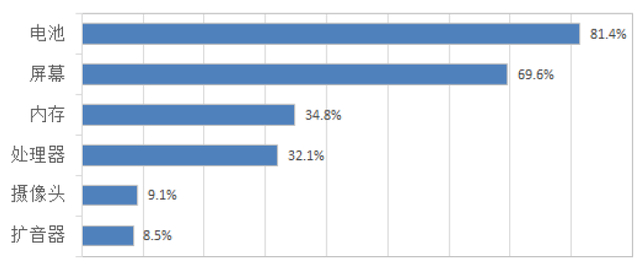 在配置方面,消费者的关注度集中在电池方面,比例高达81.4%,可见手机续航依然是消费者持久不变的重要需求。而消费者虽然最在意拍照,但是对于摄像头的关注度却不高,仅占9.1%,相比配置,拍照效果才是消费者最关心的。