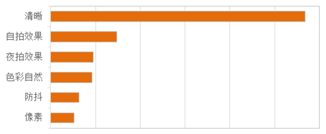 中国统计信息服务中心《中国手机消费者需求研究报告》(2016上半年)显示:在选购手机时,消费者最看重外观,而在手机功能方面,消费者最关注拍照,消费者对苹果、OPPO、三星三品牌的拍照认可度最高,占比分别为72.4%、71%、69.8%。