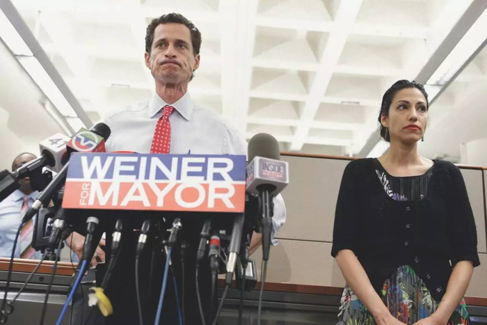 这种论调很常见,之前美国大选的骨节眼上,希拉里的邮件门被FBI重新调查,就是因为警方从希拉里的竞选顾问胡玛·阿贝丁已分居的丈夫安东尼·韦纳的邮箱里找到了大量可疑邮件。韦纳在男女关系上劣迹斑斑,今年因为涉嫌性骚扰未成年人被FBI调查,而他最著名的往事大概是,2013年他给多位女性发了色情图片,丑闻爆发后,妻子给他站台并表示原谅,但舆论不原谅,压力下韦纳辞去了议员职务。