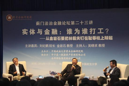 新浪财经讯 11月16日,蓟门法治金融论坛第二十三讲在中国政法大学举行,本期论坛主题是:“实体与金融:谁为谁打工?——从金岩石要把林毅夫钉在耻辱柱上辩起”,在辩论环节,经济学家金岩石认为:众里寻他千百度,暮然回首木,牛市就在灯火阑珊处。沪指3000,创业板2100,这是我们年年期待长期性慢牛的起点,而这个慢牛将持续三到五年的时间,什么时候泡沫磨灭,我们重新回到某一场灾难。