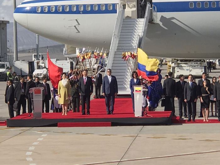 当地时间17日下午,国家主席习近平抵达基多,开始对厄瓜多尔进行国事访问。这是两国建交36年来,中国国家元首首次访厄,也开启了习近平就任国家主席后第3次拉美之行。科雷亚总统打破厄国内《公共典礼条例》和总统不赴机场迎送外国元首的惯例,亲赴机场举行隆重仪式,欢迎习近平主席的到来。