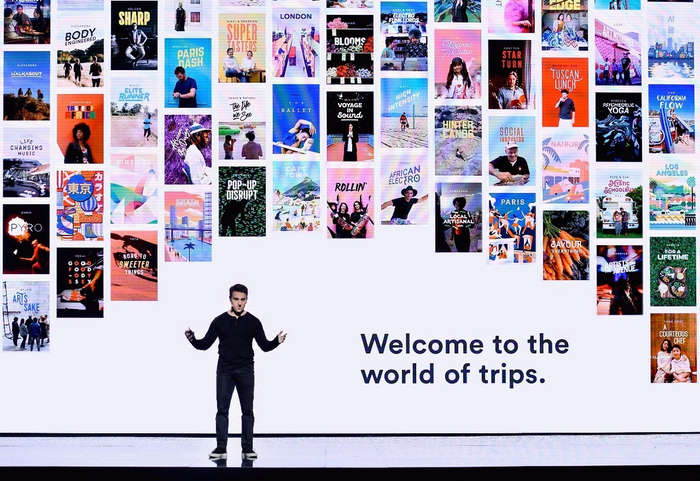 发布会现场,Airbnb联合创始人、CEO Brian Chesky在介绍Airbnb的旅游产品“Magical Trips”。
