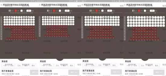 而这种奇怪的现象在新疆更甚。记者在格瓦拉和猫眼上发现乌鲁木齐戛纳国际影城《我不是潘金莲》在凌晨1点的场次状态分别为“已选”、“已售”,这意味着观众无法通过手机端买到该场次的电影票。