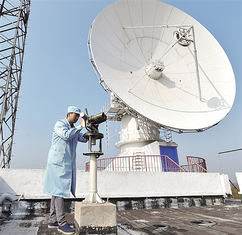 10月16日,太原卫星发射中心阳曲站的技术人员进行雷达标校。