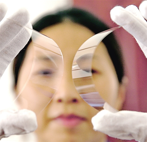 图为应用在“天宫二号”上的高强度抗辐照玻璃盖片,它能够抵抗太空中各种有害离子的撞击,透光率高、抗高低温冲击。