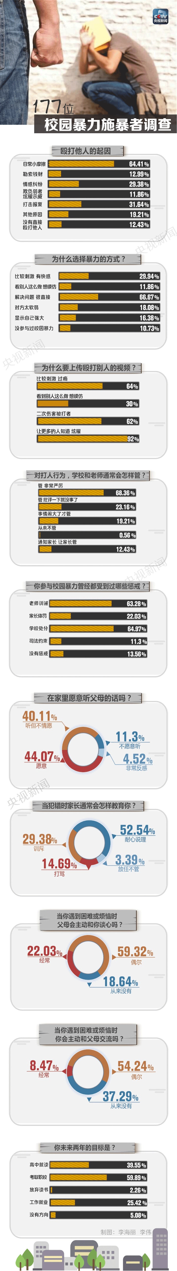 记者对177名参与过校园暴力的未成年人进行了问卷调查。