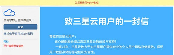 三星云宣布关闭个人云存储服务 或只针对国内用户