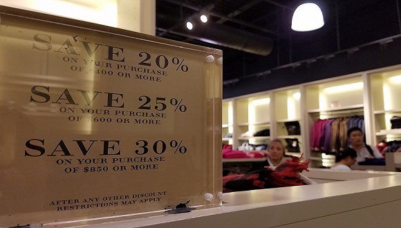 商场中的累积折扣标识。 摄影:杨珂