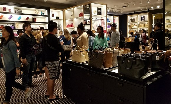 在奥兰多就读佛罗里达中央大学(University of Central Florida)大四的中国留学生小刘说,几年前刚来这里的时候就被奥特莱斯的大牌“惊艳”到,于是做起了代购赚点儿“零花钱”。她说:“每次黑五我都会来,跟国内同步直播,正好我是晚上他们下午,方便沟通。一般都是先列好了购物清单再来买,有时候网上的折扣很没诚意,不如实体店实在,还常有惊喜。比如我在这边直播的是一些来之前没想到的好折扣或者好货。像是在蔻驰奥特莱斯工厂店里发现了专卖店的货,白菜价,利润高,我就得赶紧攥在手里,拍张图片发到朋友圈。”小刘还透露,只是黑五这几天,她可以靠代购赚足至少3000美金,她同时强调自己并非专业代购。