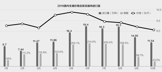 今年前10个月,共有139.4万吨猪肉漂洋过海,进口到中国。据海关数据显示,2016年10月我国进口猪肉共11.54万吨,环比下降17.8%,但与去年同期相比上涨仍43.5%,而1~10月份累计进口猪肉量更是比去年同期大幅增长132.8%。