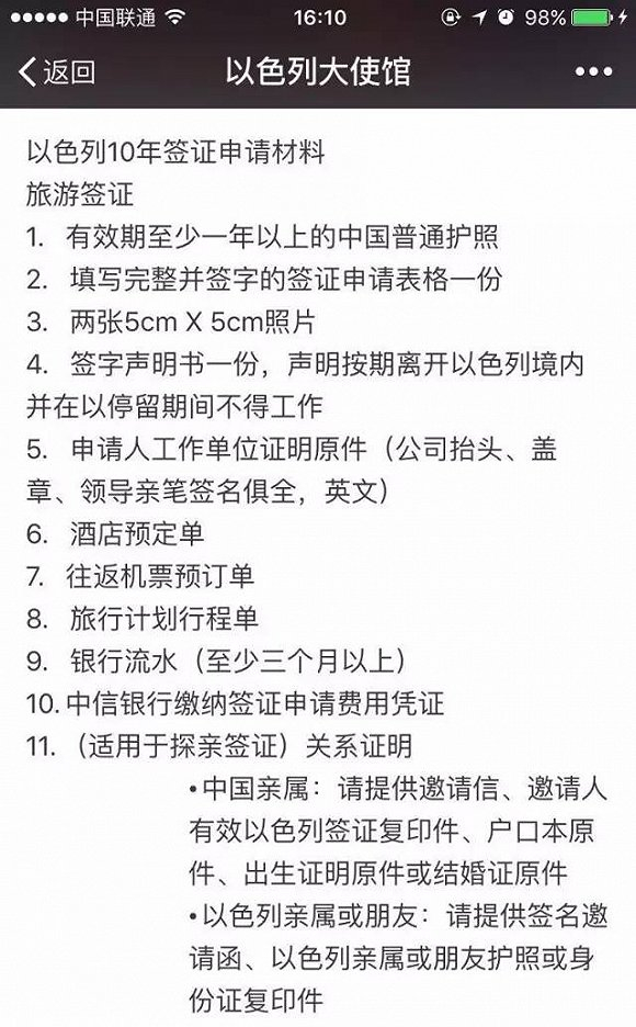 1、如何办理以色列十年签证?根据以色列大使馆官方微信发布的消息,办理以色列10年签证需要提供以下材料: