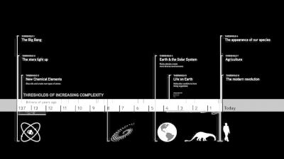 思考整个过去,是整个人类社会想方设法去做的事情。思考的结果可以在起源故事(关于万物如何被创造的故事)或者所有重要宗教的主要文本中找到。据我们所知,起源故事在所有的社会中得到讲述;它们叙述了万物、人类、动物、地貌、地球、恒星以及整个宇宙的起源。它们也建立在每个社会最有效的知识之上。因此,它们为理解万物的历史提供了一幅路线图。这些关于过去的“地图”很有影响,因为它们帮助个体理解他们自己如何融入这个关于宇宙和地球上生命的故事之中。