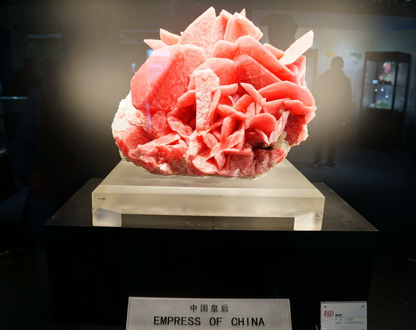此次展览以推介国内重要矿产地、特色矿物晶体系列为主线,并兼顾展示了国外部分特色矿物晶体标本。如产自广东阳春石菉最大的花朵状蓝铜矿晶簇,产自内蒙古黄岗梁最漂亮的黑柱石晶簇,产自广西梧州世界罕见的菱锰矿标本—“中国皇后”,产自湖南郴州迄今所见最大的巨型车轮矿晶体,产自四川雪宝顶的宝石级巨型白钨矿单晶和最大锡石单晶,产自湖北大冶的最美观含锰巨型方解石单晶,产自陕西丹凤的最大红锑矿晶簇,产自新疆的极品电气石和海蓝宝石,产自湖南耒阳十分罕见的石英、萤石和白云石精美组合,产自陕西商南的珍稀绿帘石巨晶,产自江西的最壮美巨型辉锑矿晶簇,以及丰富多彩、千姿百态的各类矿物精品,均为首次集中面向社会公开展出。