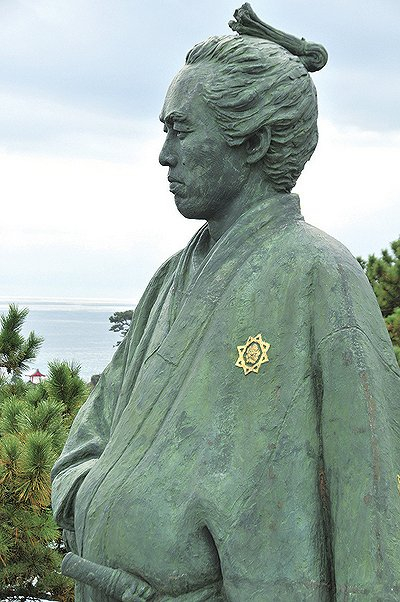 坂本龙马铜像时至今日,在坂本龙马的家乡日本高知县的海滨,还耸立着坂本龙马的铜像。他遥望着浩瀚的太平洋,右手伸在怀中。游客们常常为了坂本龙马这只手握着什么而争论不休。有人说是握着手枪,也有人说是揣着英日词典。