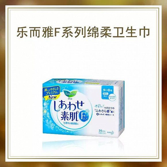 花王的乐而雅F系列绵柔卫生巾独特的绵柔凹凸表面,亲肤不刺激,让空气在肌肤之间流动,干爽不黏腻。配合预防渗漏的超吸收聚合物,拥有普通卫生巾两倍的吸收量,让你量多的日子也很从容。日用夜用各种长度任你选择。