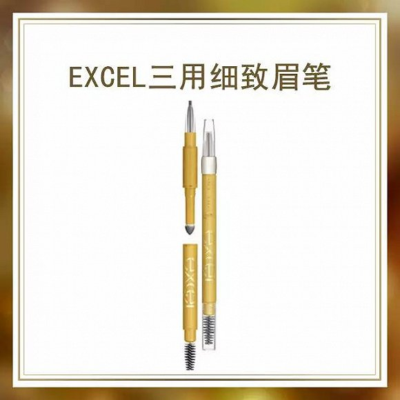 excel眉笔一支就有眉笔、眉粉、眉刷三个功能,笔芯柔软度适中,椭圆形状方便好画,初学者也能很快上手。持久度高,一整天也不会掉色。共有八个颜色可供选择。