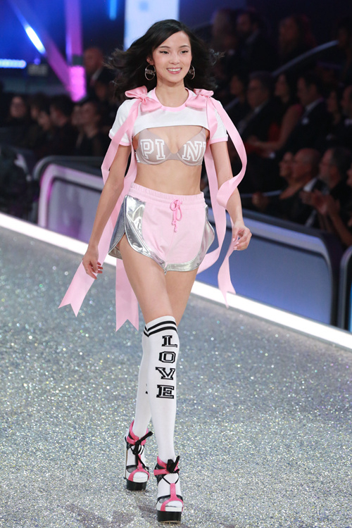 第一次参加维密秀场的中国超模雎晓雯演绎Pink Nation系列