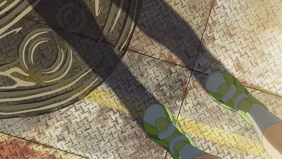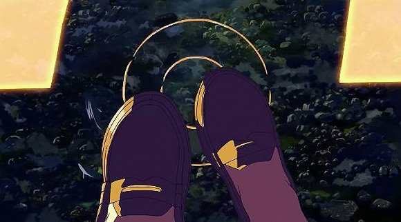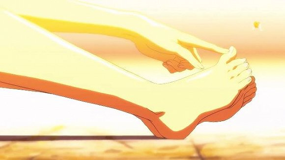 通过上面的截图,相信你们也会发现,新海诚的动画里,经常会有意无意的展示足与腿,这应该也是新海诚导演的审美品位吧。