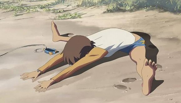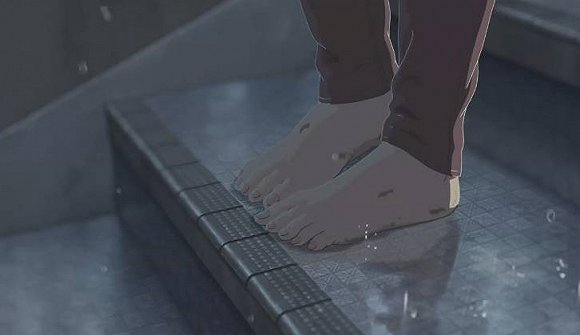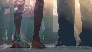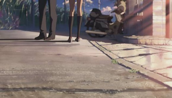 新海诚:(笑)喜欢脚的男士一点都不少,我确实也很喜欢,是女性身体部位中最喜欢的部分吧。我是觉得脚是表情非常丰富的一个部位,三叶在东京感到疲惫的时候,只通过刻画脚就可以传达出这种疲劳感。而在《秒速5厘米》第二话里,花苗试图向贵树表白的时候,我也把镜头切到了她的脚部,我是觉得仅通过脚就可以表达人物的犹豫不决。总之脚是个很有戏的部位,我觉得很有魅力。