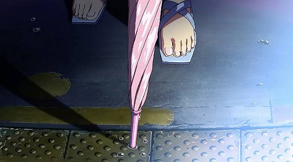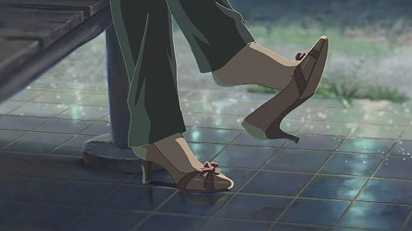 嗯,在这场戏里,女主有意揉了揉脚,并特写展示了足部。而这场戏,其实是无关紧要的。如果在其他人的电影里,我并不会关心这个地方。不过,这是新海诚的电影。