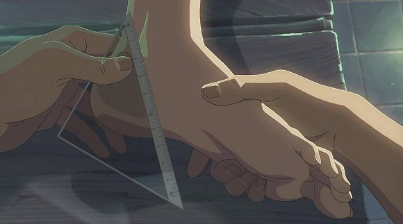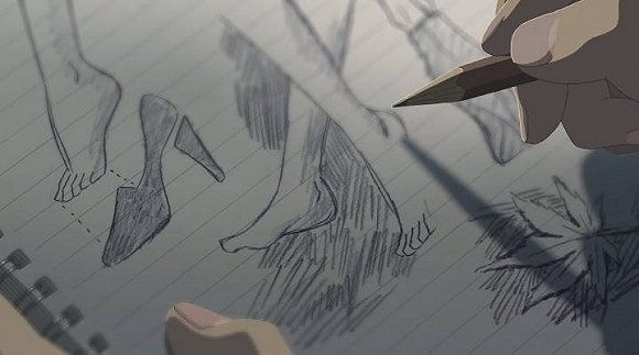 然后,我以及我组脏老师,展开细致的调查,发现,新海诚并不仅《言叶之庭》有对足部的凝视哦,而在之前多部动画中,都有意无意,表现过对脚的爱。只不过,《言叶之庭》大爆发了。
