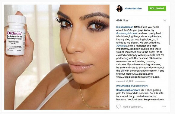 新规之后的KOL公号文章会是这样吗?然而实际上,有相当一部分的明星网红并没有乖乖按照规定办事。Public Citizen最近的投诉,就包括卡戴珊家族的不少成员。行事高调的这一大家子,遭到的类似投诉不止一次——今年8月,另一个消费者权益组织Truth in Advertising也向FTC投诉称,卡戴珊家族有超过100条Ins软文没有注明广告信息。去年,金·卡戴珊在Instagram上发布了一条药品广告,因为没有注明潜在的副作用,被FDA(美国食品及药物管理局)勒令撤下。