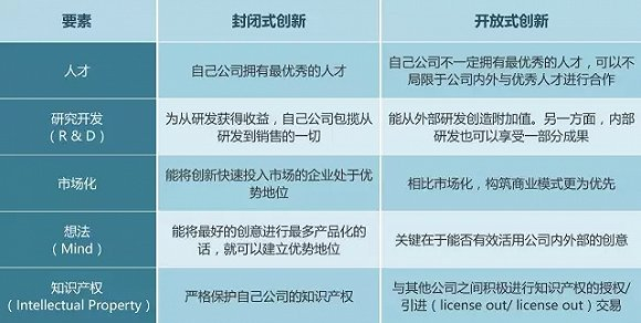表1  封闭式创新和开放式创新的比较