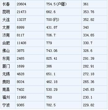 表:主要一二线城市总面积和人口比较