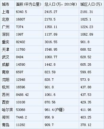 (数据:第一财经日报整理,城区人口数据来源于《中国城市建设统计年鉴2013》)