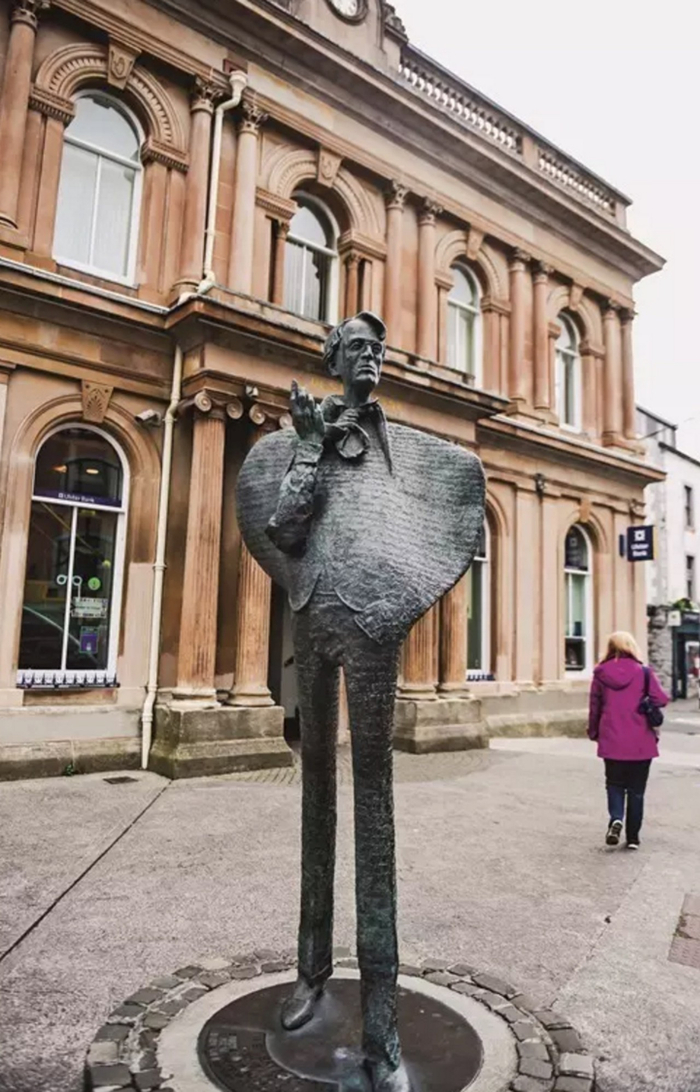 1939年,叶芝在法国逝世。遵照遗愿,1948年他的遗体被送回故乡斯莱戈,墓碑上刻着晚年作品《本布尔宾山下》的最后一句——冷眼一瞥 / 生与死 / 骑者 / 且前行。