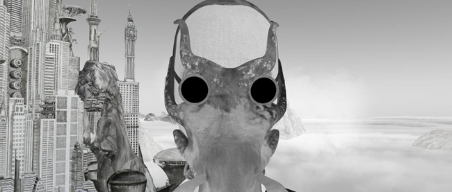 观看艺术家邱黯雄的动画影像作品“新山海经”是个有趣的体验。上来便是中国传统黑白水墨的图景,山水天地却回响着无调性的后现代背景音乐。古画里常见的水边忽然凭空而起一堆黑乎乎的厂房,留白的水面也慢慢被染成黝黑。
