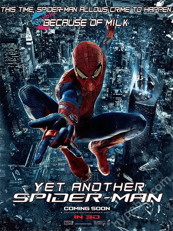“这次,蜘蛛侠放任罪恶发生,只因为——一瓶牛奶!”