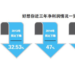 尽管好想你在拓展新的盈利增长点上不断发力,但是业绩的表现从目前来看却依然不乐观。最新的三季报显示,公司今年前三季度营收为9.47亿元,同比增长11.5%,净利润为1481.4万元,同比下滑41.57%。从年报数据来看,好想你的净利润已经连续三年处于下滑状态。2013年,好想你剔除非营业收入后净利润为0.62亿元,同比下滑32.53%;2014年净利润为0.53亿元,同比下降47%;去年,净利润更是出现了亏损,亏损幅度达到323万元,同比下滑106.02%。