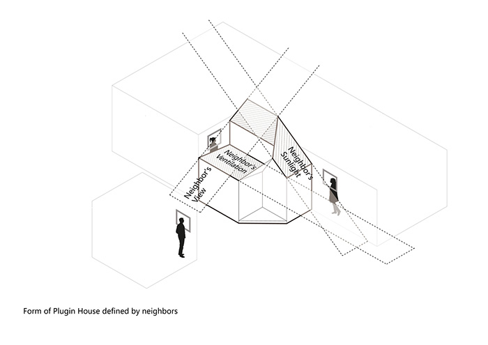 为了不影响邻居采光、实现与通风所做的设计