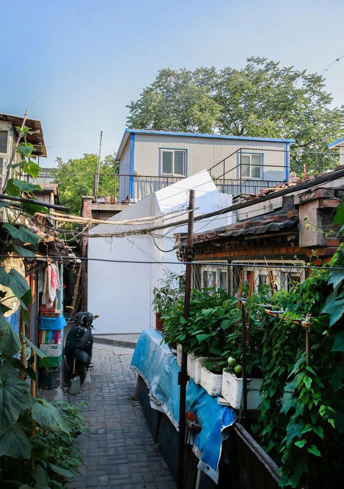 对胡同里老房子进行改造难度很大。新建房屋不能影响任何邻居的采光、视线与通风,所以出现了不同方向的退台和斜切面。甚至在搭建过程中,邻居也会随时提出新的意见,但插件板可以轻松地进行现场切割,这一特性使得调整都能快速、方便地实现。