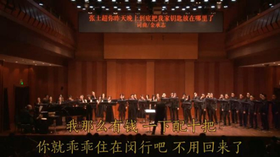 这个仿佛盲人二胡队的合唱团,竟然把找不到家门钥匙这么件小事儿唱得气势恢宏。▼