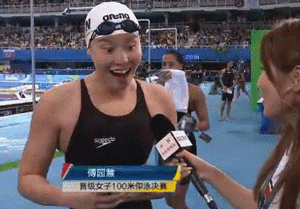 “洪荒少女”傅园慧因为半决赛魔性的采访走红。